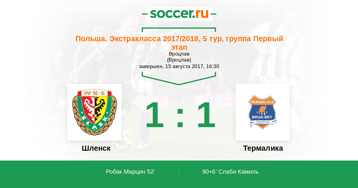 52' (1:0) Робак Марцин (9) (Косецки Якуб (7))