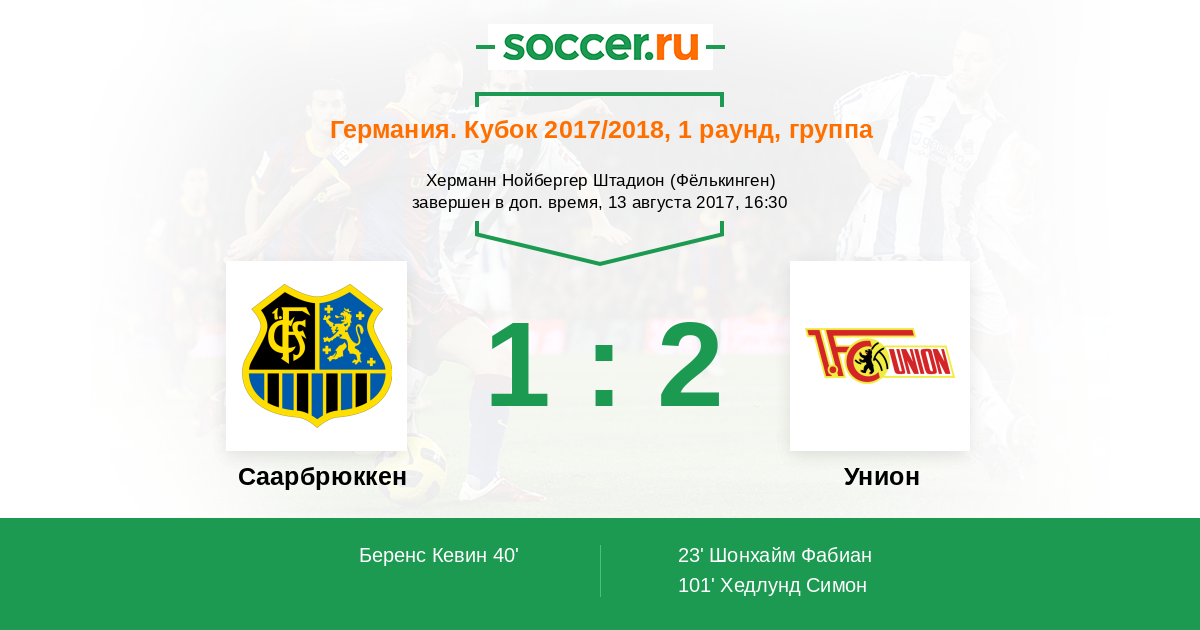 23' (0:1) Шонхайм Фабиан (34) (Триммель Кристофер (28))
