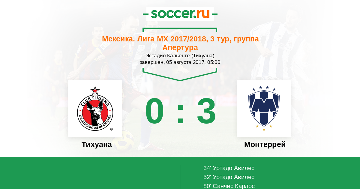 34' (0:1) Уртадо Авилес (18) (Санчес Карлос (13))