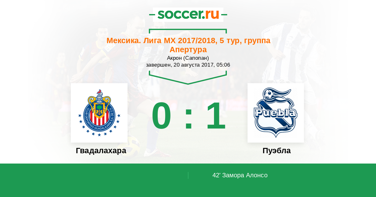 42' (0:1) Замора Алонсо (17) (Акуна Франсиско (8))