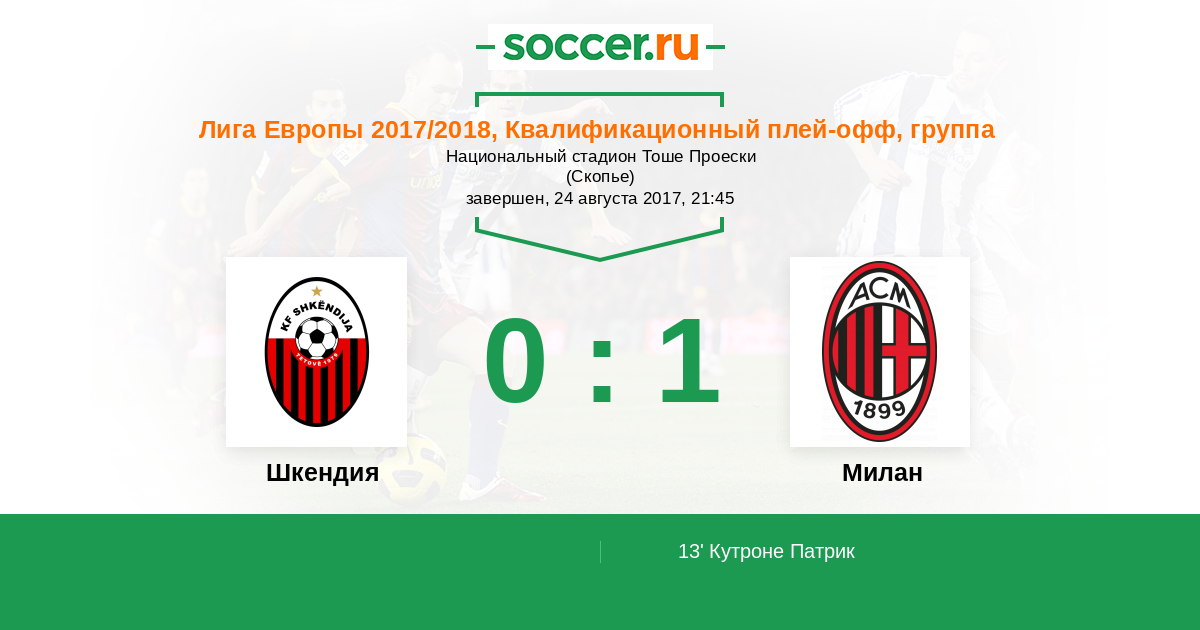 13' (0:1) Кутроне Патрик (63) (Локателли Мануэль (73))