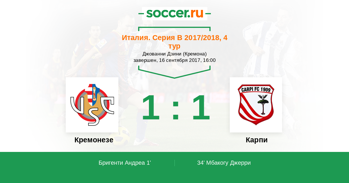 1' (1:0) Бригенти Андреа (9) (Мокулу Бенджамин (14))