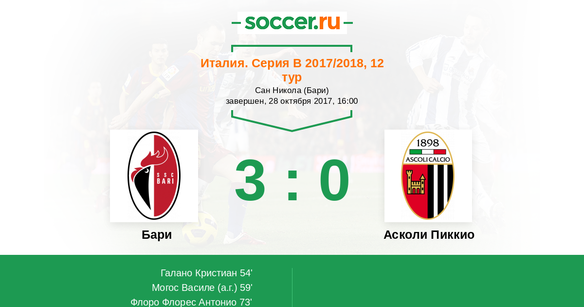 54' (1:0) Галано Кристиан (11) (Кассани Маттиа (15))