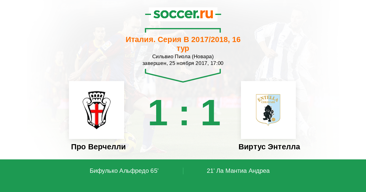 65' (1:1) Бифулько Альфредо (16) (Маммарелла Карло (3))