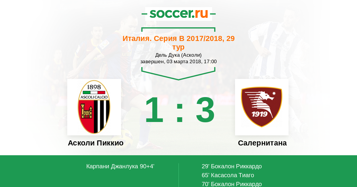 29' (0:1) Бокалон Риккардо (24) (Кийин Софьян (13))