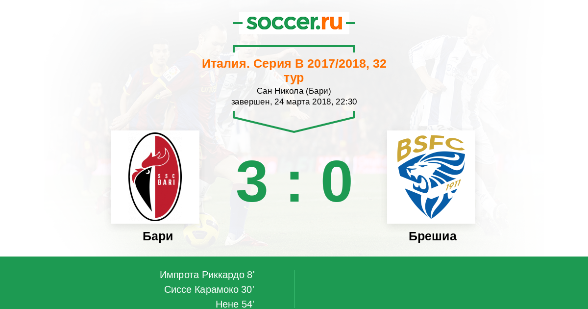 8' (1:0) Импрота Риккардо (16) (Нене (27))