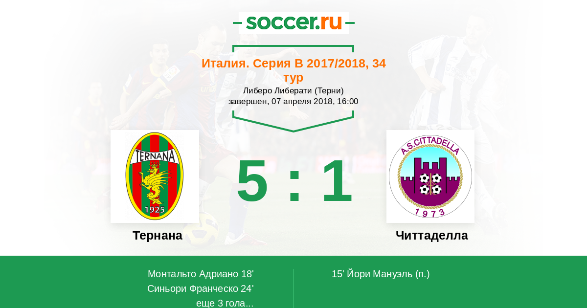 67' (5:1) Тремолада Лука (16) (Монтальто Адриано (32))