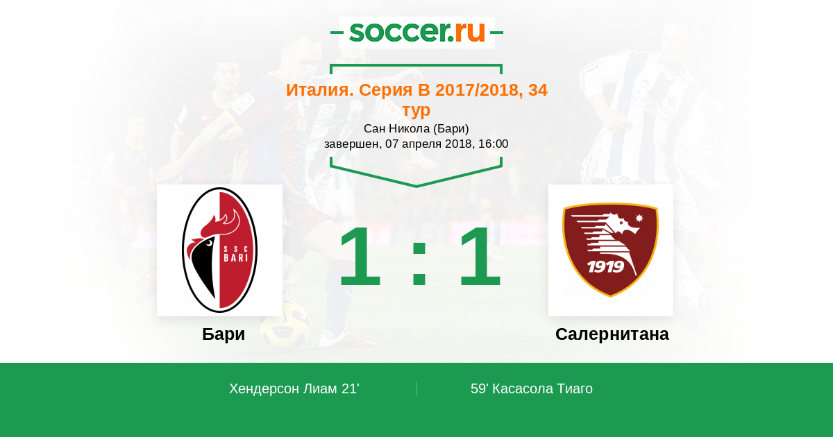 59' (1:1) Касасола Тиаго (15) (Паломби Симоне (19))