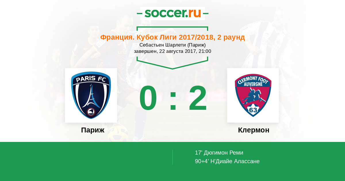 17' (0:1) Дюгимон Реми (21) (Н'Диайе Алассане (11))