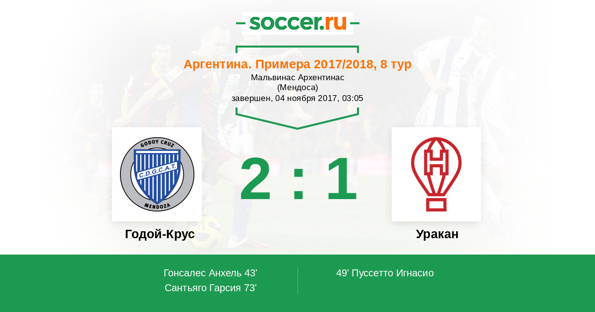 43' (1:0) Гонсалес Анхель (8) (Сантьяго Гарсия (18))