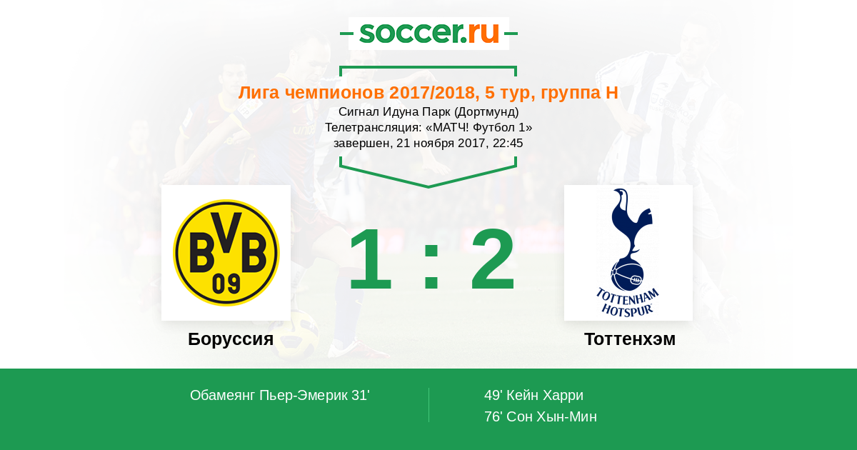 76' (1:2) Сон Хын-Мин (7) (Алли Деле (20))