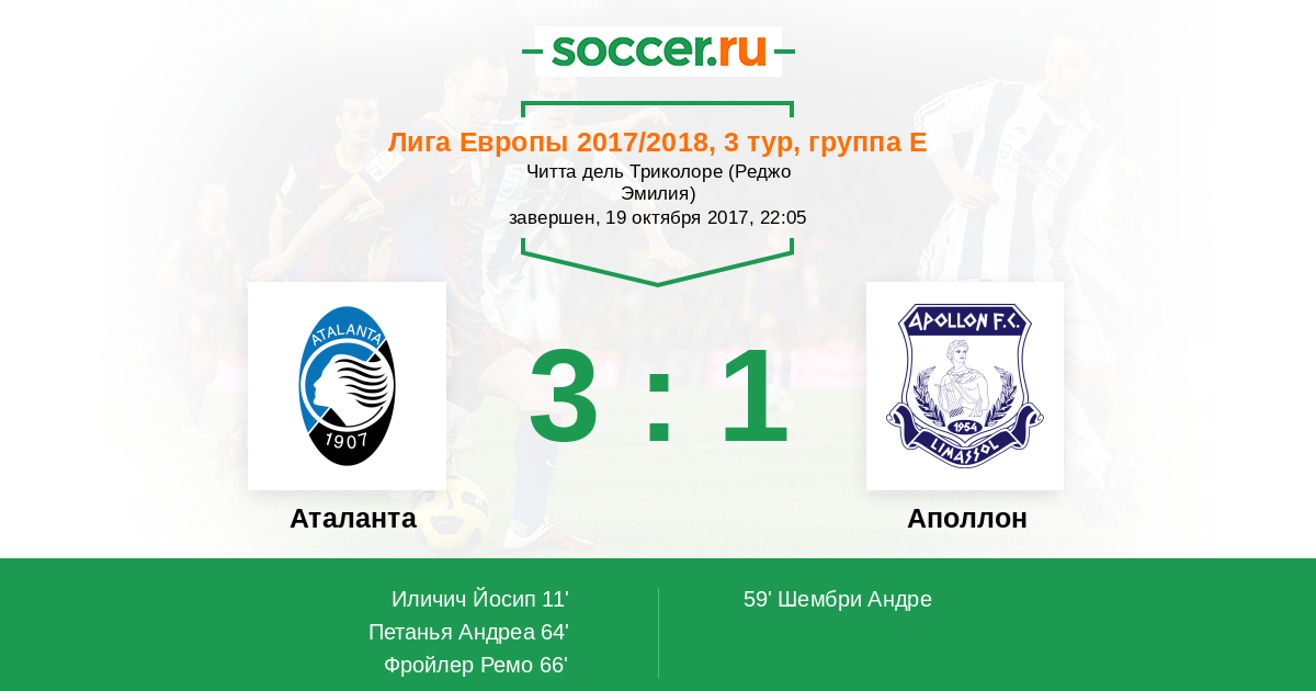 11' (1:0) Иличич Йосип (72) (Спинаццола Леонардо (37))