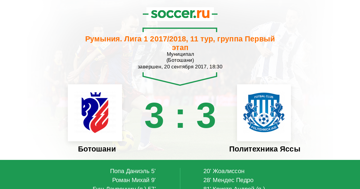 28' (2:2) Мендес Педро (77) (Кристя Андрей (10))