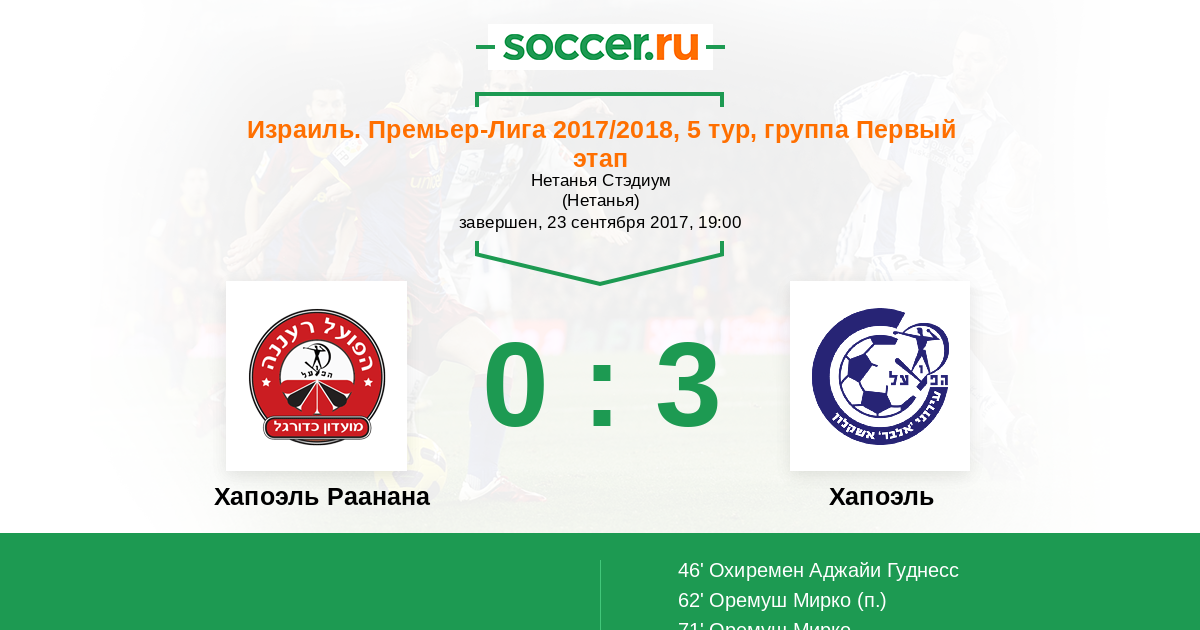 Запасные: 8 Шокер Снир (с 62'), 10 Хуги Дор (с 62'), 77 Савир Бен (с 83'), 26 Коэн Ярден, 32 Вахаба Бен, 66 Тейтельман Ювал, 96 Антман Офек
