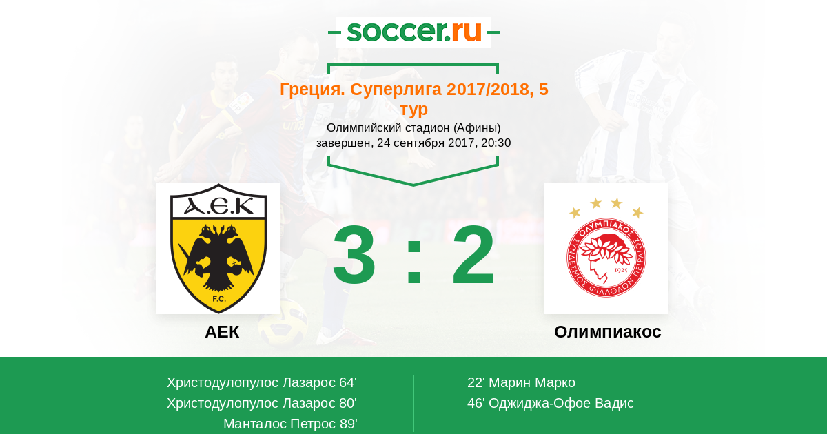 89' (3:2) Манталос Петрос (20) (Ливайя Марко (10))
