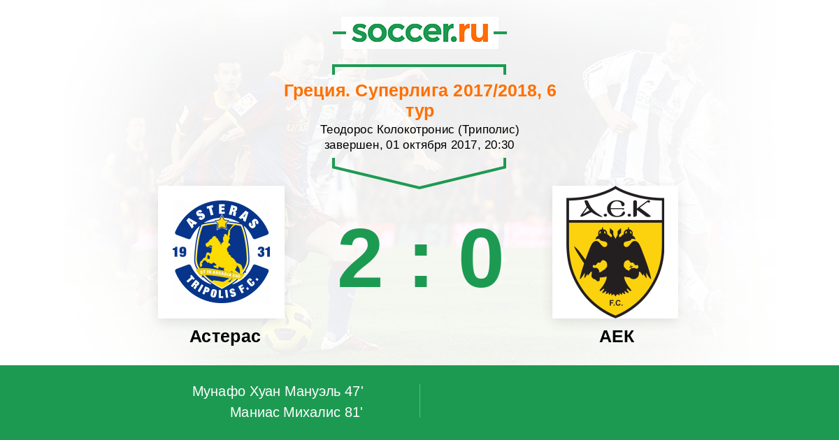 47' (1:0) Мунафо Хуан Мануэль (8)