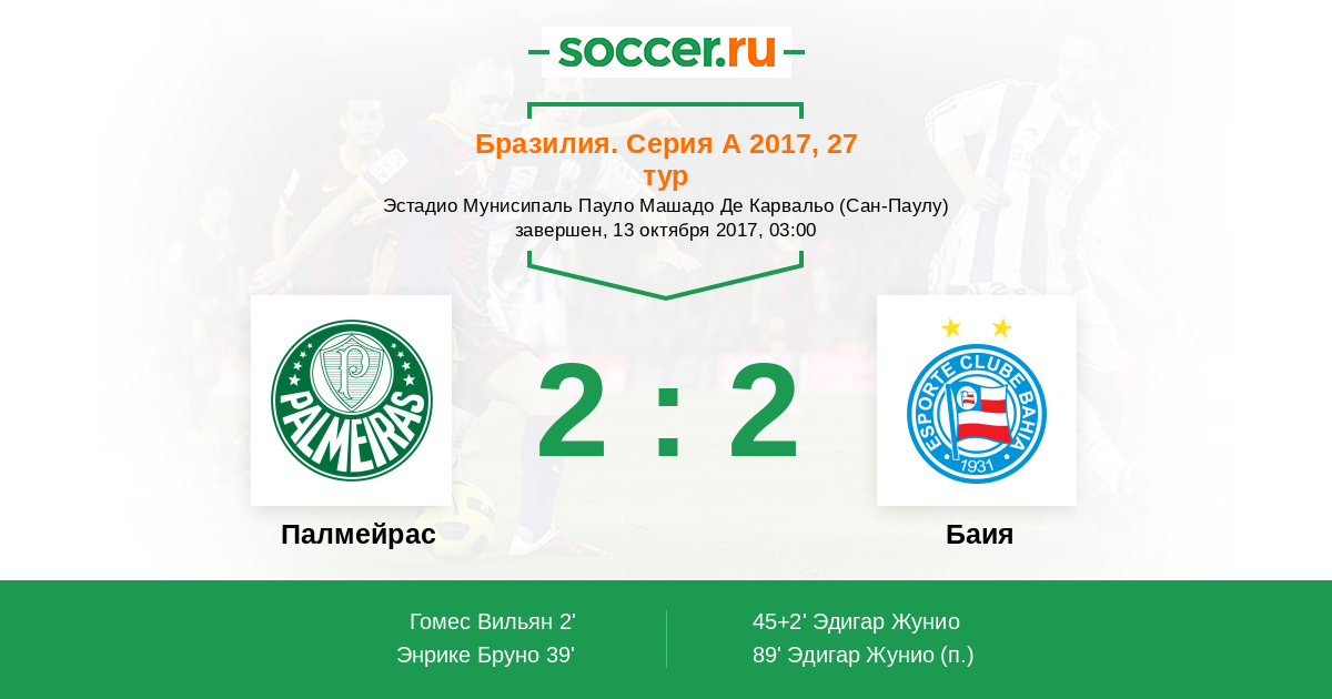 39' (2:0) Энрике Бруно (19) (Гомес Вильян (29))