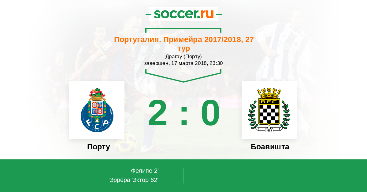 2' (1:0) Фелипе (28) (Оливейра Сержиу (27))