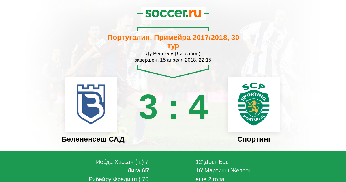 16' (1:2) Мартинш Желсон (77) (Фернандеш Бруну (8))