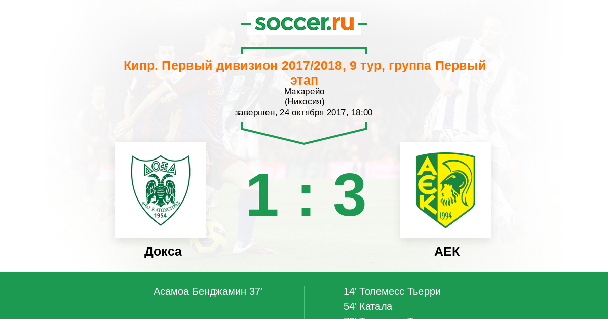 Запасные: 20 Лабан Венсан (с 67'), 21 Энглезу Никос (с 78'), 19 Митидис Несторас (с 84'), 1 Георгаллидес Антонис, 2 Сория Карлес, 7 Хорхе, 12 Тричковски Иван, 18 Мурильо, 22 Малоку Эльвир, 35 Панков Радован, 80 Рушиас Онисифорос