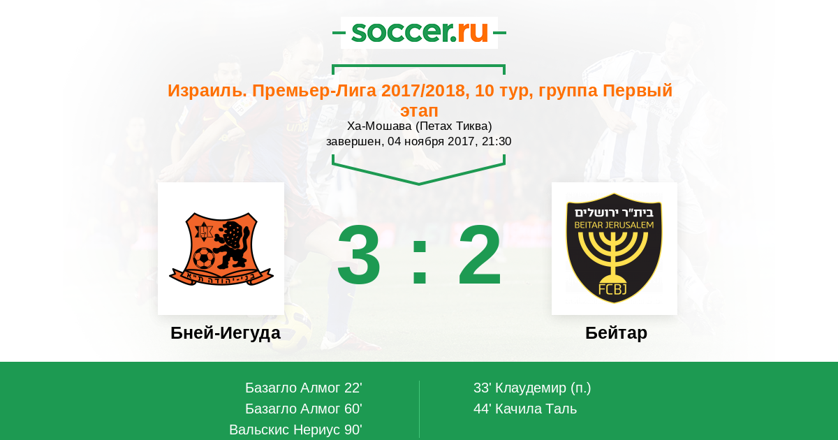 Запасные: 11 Коэн Йонатан (с 63'), 8 Хозез Матан (с 88'), 16 Габай Довев (с 90'), 2 Мори Ден, 18 Перетц Элиэль, 22 Израели Итамар, 27 Марсело