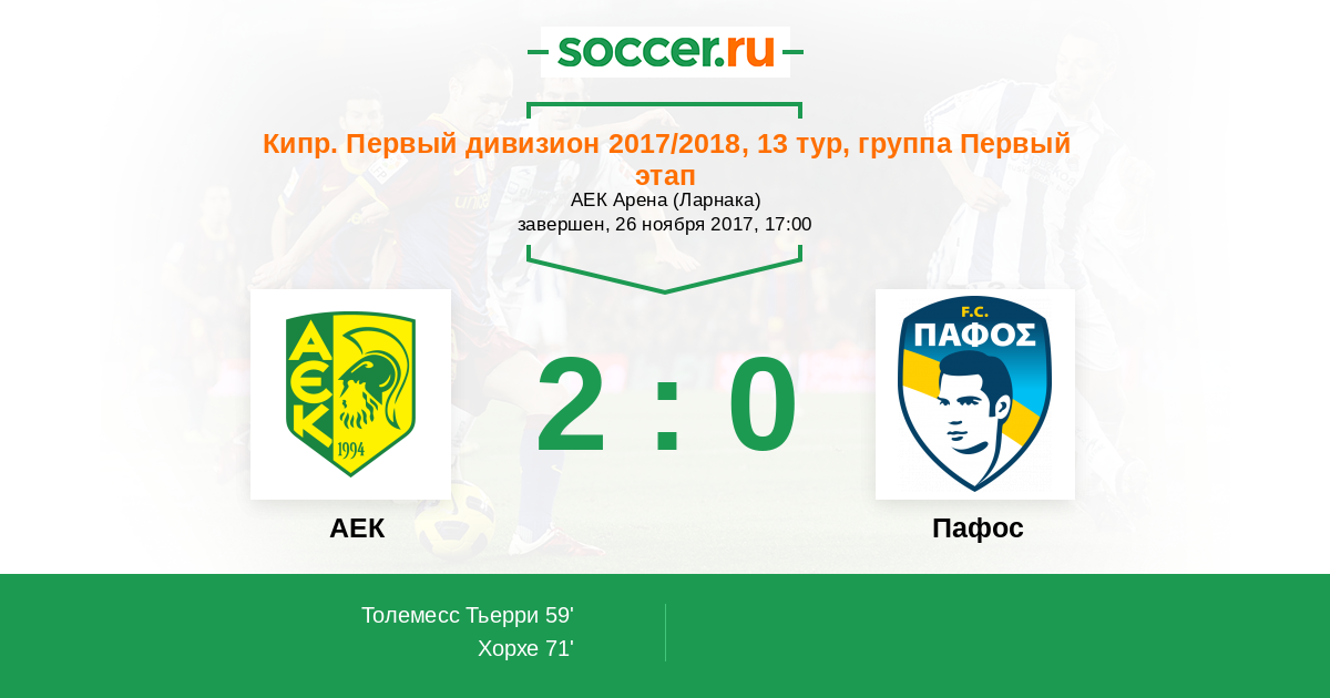 Запасные: 4 Труйолс Хоан (с 46'), 3 Антониадес Мариос (с 75'), 16 Касес Начо (с 89'), 1 Георгаллидес Антонис, 2 Сория Карлес, 14 Больевич Владимир, 21 Энглезу Никос, 22 Малоку Эльвир, 32 Нелсон Маркуш, 35 Панков Радован, 80 Рушиас Онисифорос