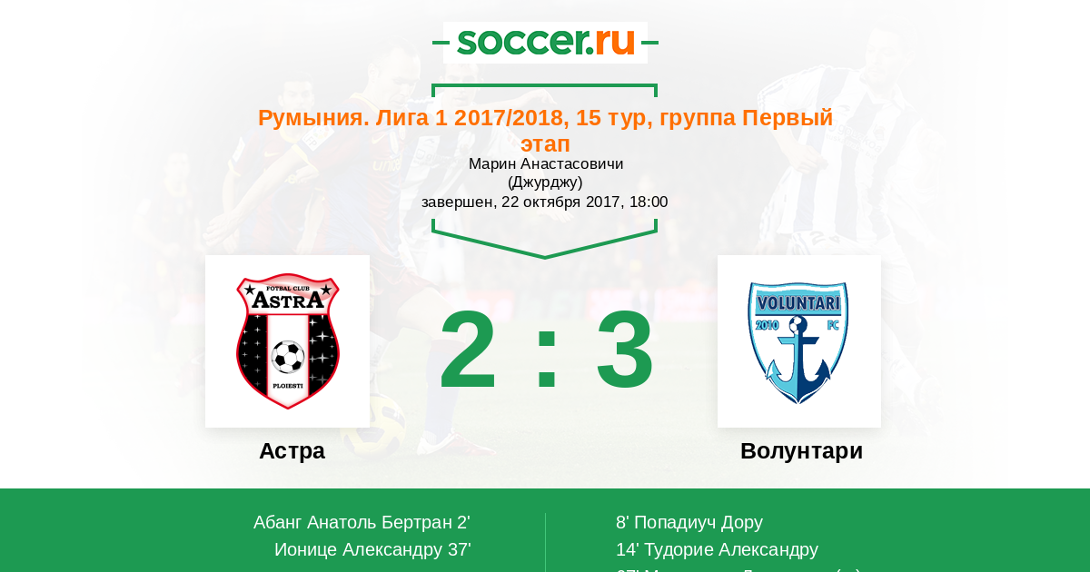 8' (1:1) Попадиуч Дору (59) (Маринеску Лаурентиу (20))