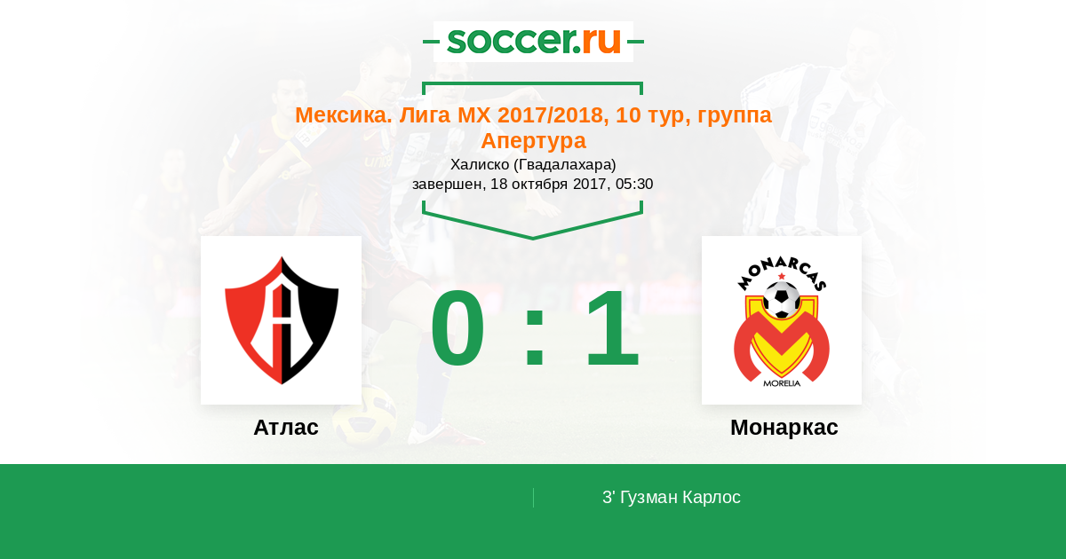 3' (0:1) Гузман Карлос (5) (Руидиас Рауль (9))
