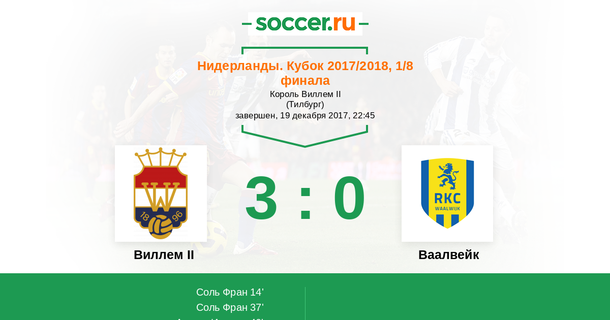 37' (2:0) Соль Фран (9) (ван дер Линден Йоп (5))