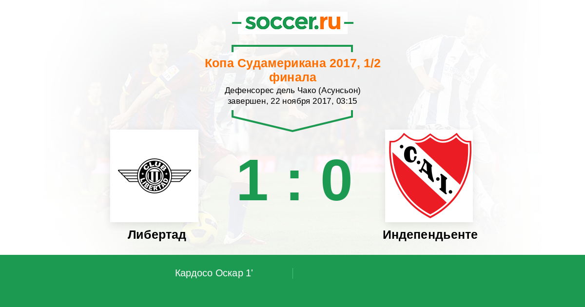 1' (1:0) Кардосо Оскар (9) (Акино Серхио (16))