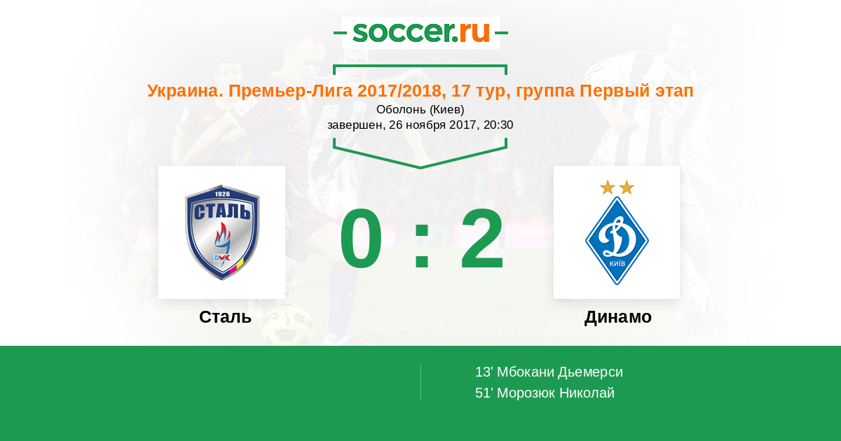 13' (0:1) Мбокани Дьемерси (70) (Шапаренко Николай (40))