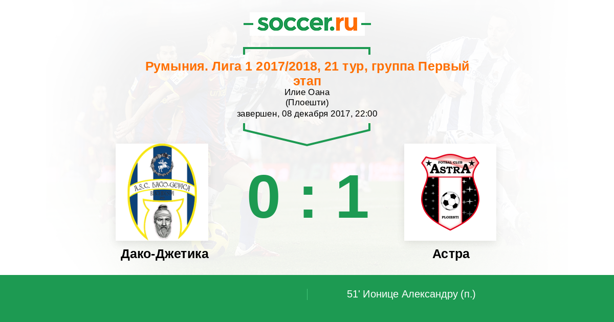 51' (0:1) Ионице Александру (10)