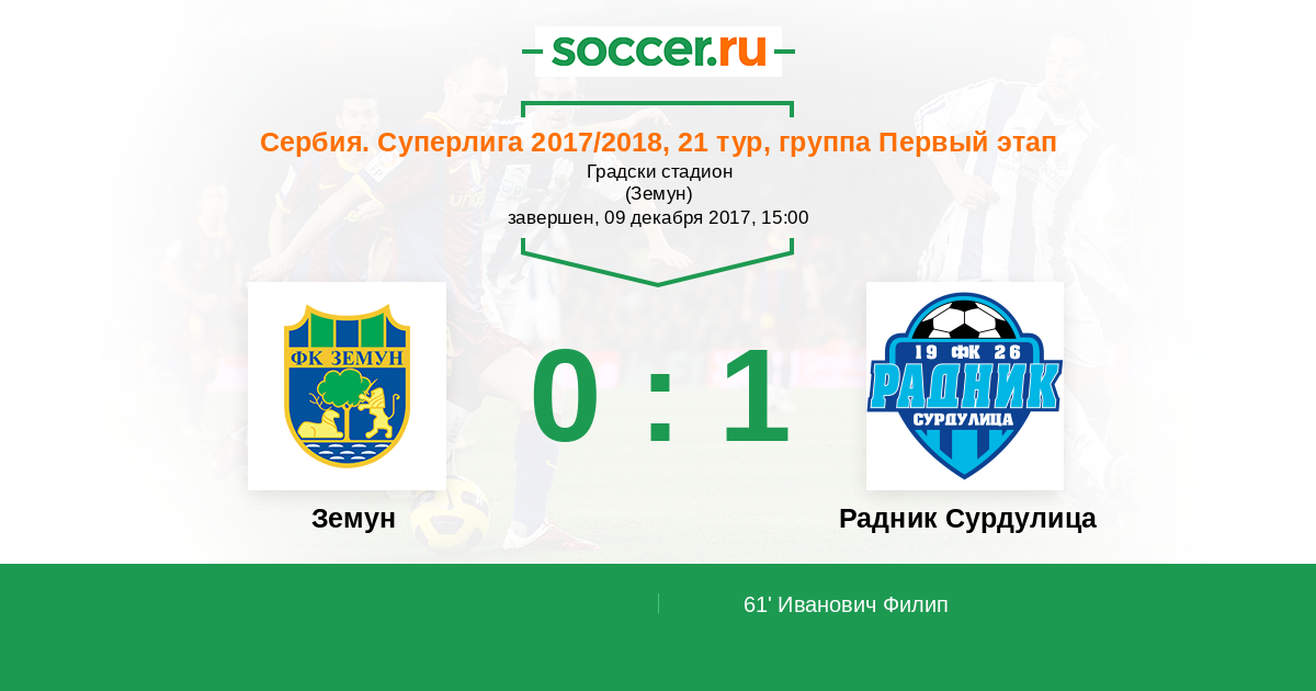 61' (0:1) Иванович Филип (5)