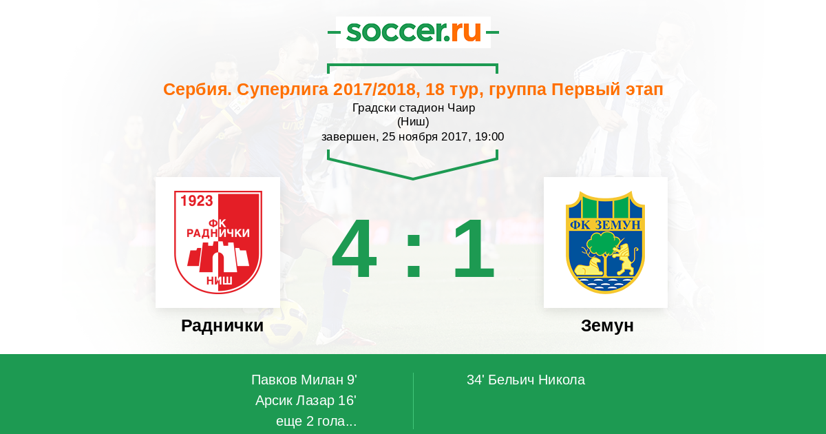 16' (2:0) Арсик Лазар (11)