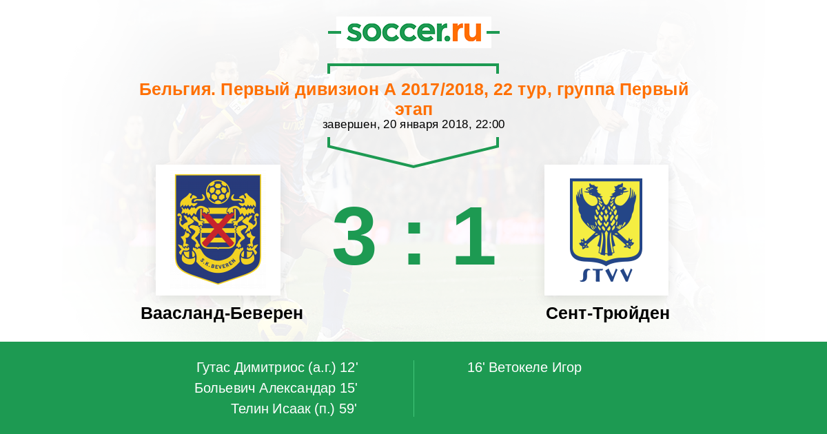 16' (2:1) Ветокеле Игор (14) (Лежар Жонатан (27))