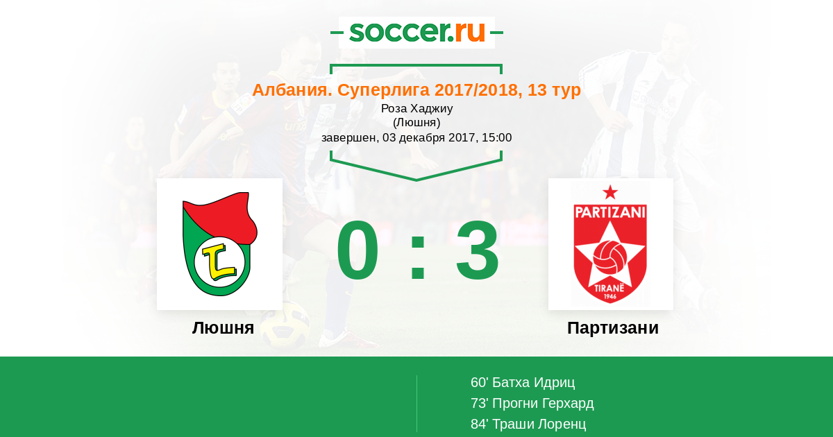 Запасные: Сукай Джевахир (с 62'), Фили Реалдо (с 75'), Котобелли Блерим (с 84'), Сулеймани Албан, Джика Дашамир, Красники Гезим, Адорьян Криштиан