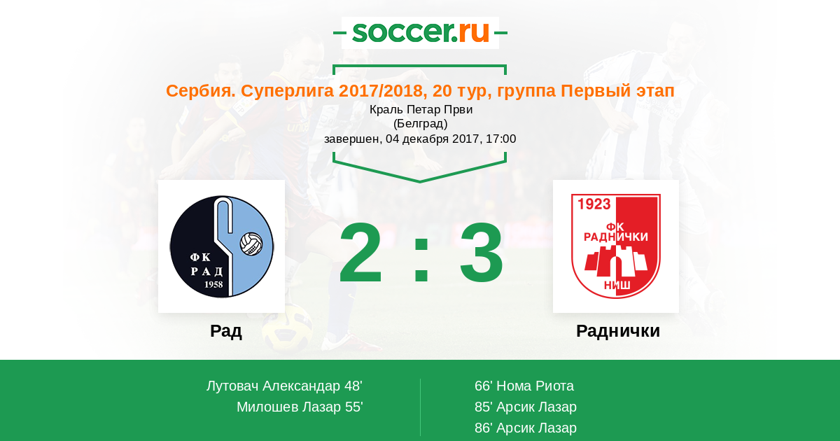 48' (1:0) Лутовач Александар (17)