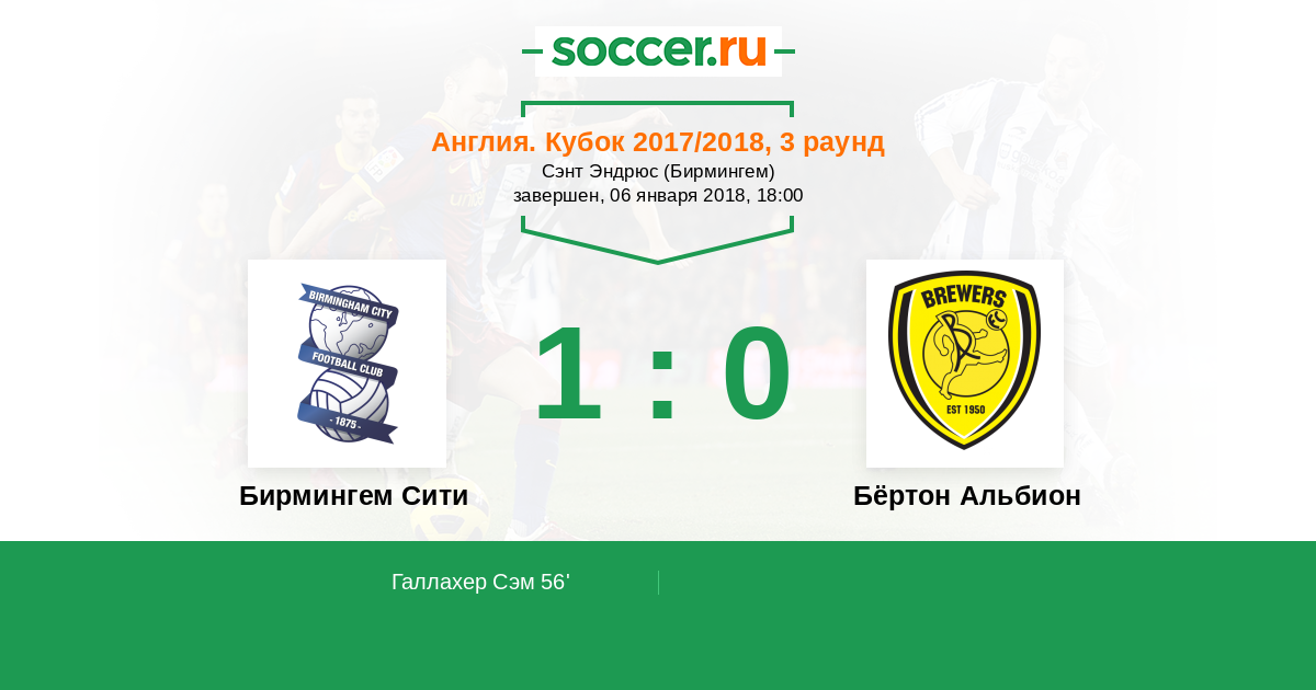 56' (1:0) Галлахер Сэм (18) (Магома Жак (19))