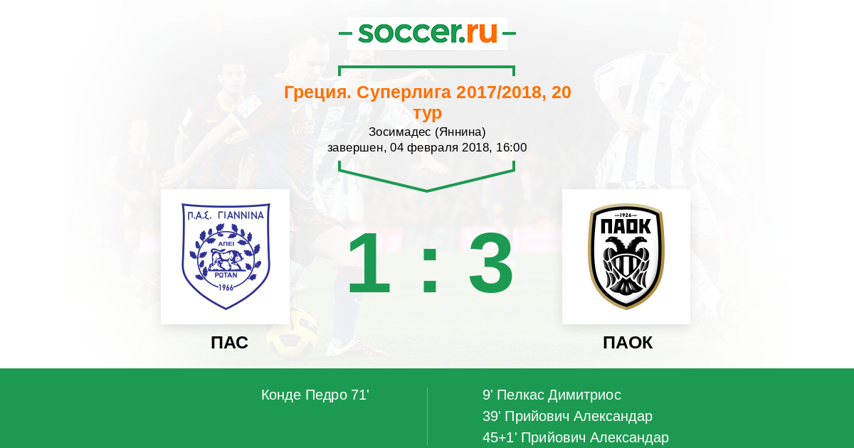 71' (1:3) Конде Педро (9) (Мантатис Георгиос (27))