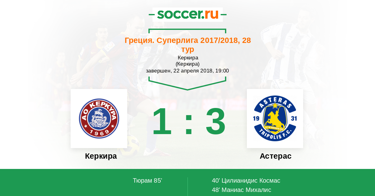 48' (0:2) Маниас Михалис (11) (Кириакопулос Гиоргос (77))