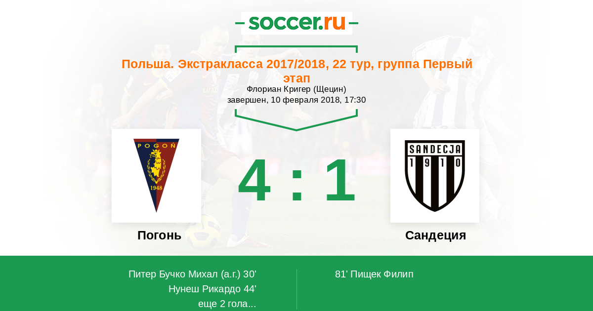 30' (1:0) Автогол Питер Бучко Михал (28)