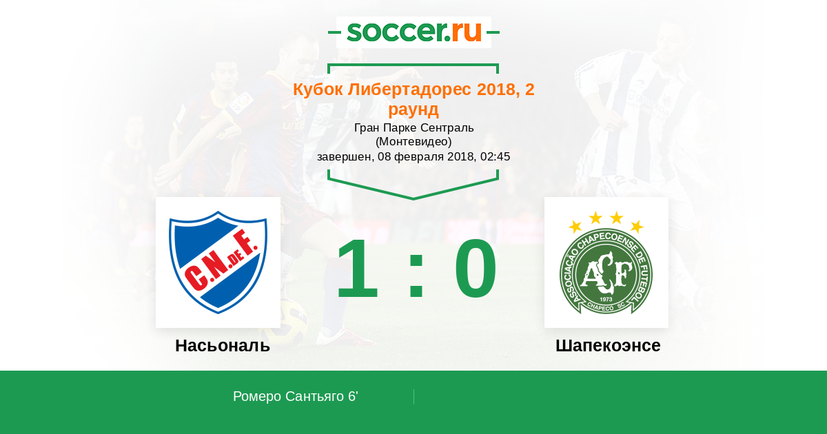 6' (1:0) Ромеро Сантьяго (19) (Пол Сунино (13))