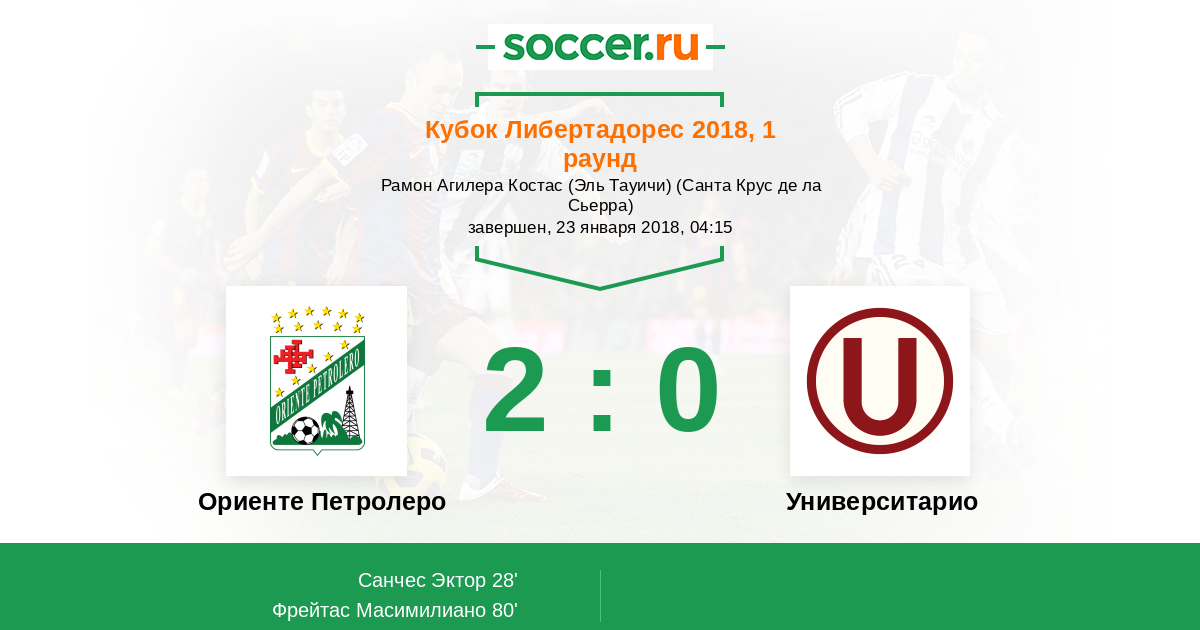 Запасные: 18 Дук Ясмани (с 46'), 12 Фрейтас Масимилиано (с 79'), 14 Меркадо Алан (с 90+2'), 2 Аньес Карлос, 5 Мендес Луис, 22 Энрике Гутьеррес Хельмут Запана, 25 Суарес Карлос