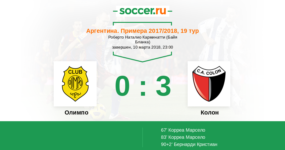 67' (0:1) Корреа Марсело (11) (Беруцци Адриан (14))