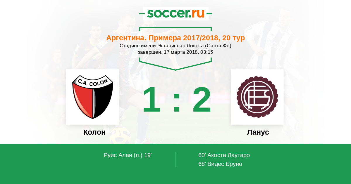 68' (1:2) Видес Бруно (32) (Ди Ренцо Гонсало (17))