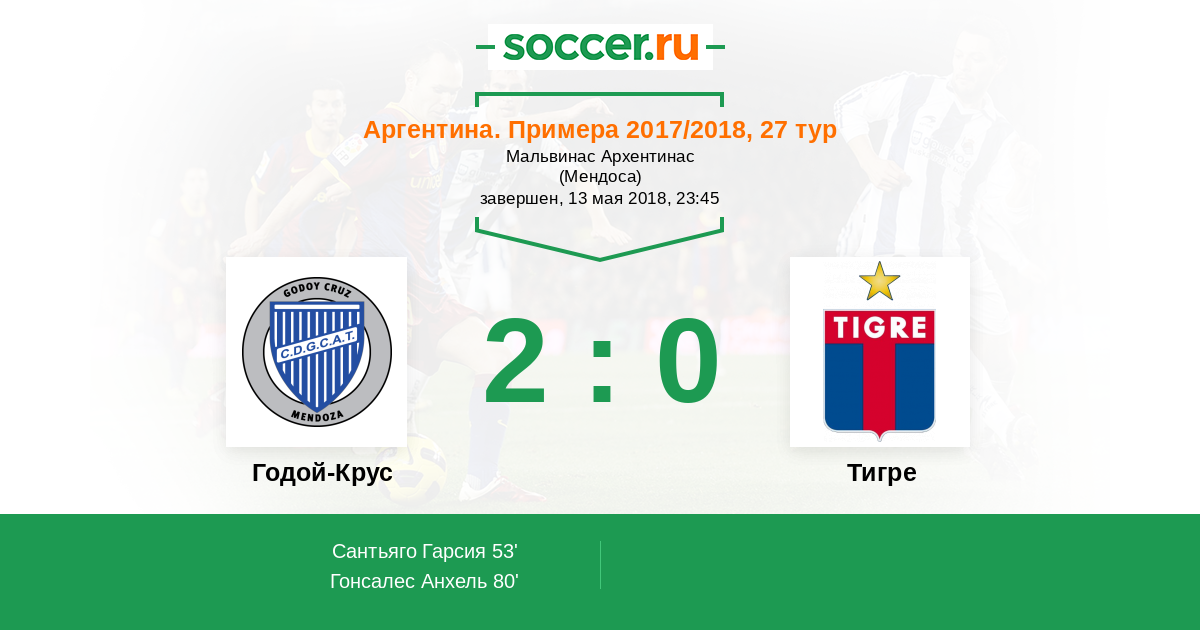 53' (1:0) Сантьяго Гарсия (18) (Фернандес Гильермо (11))