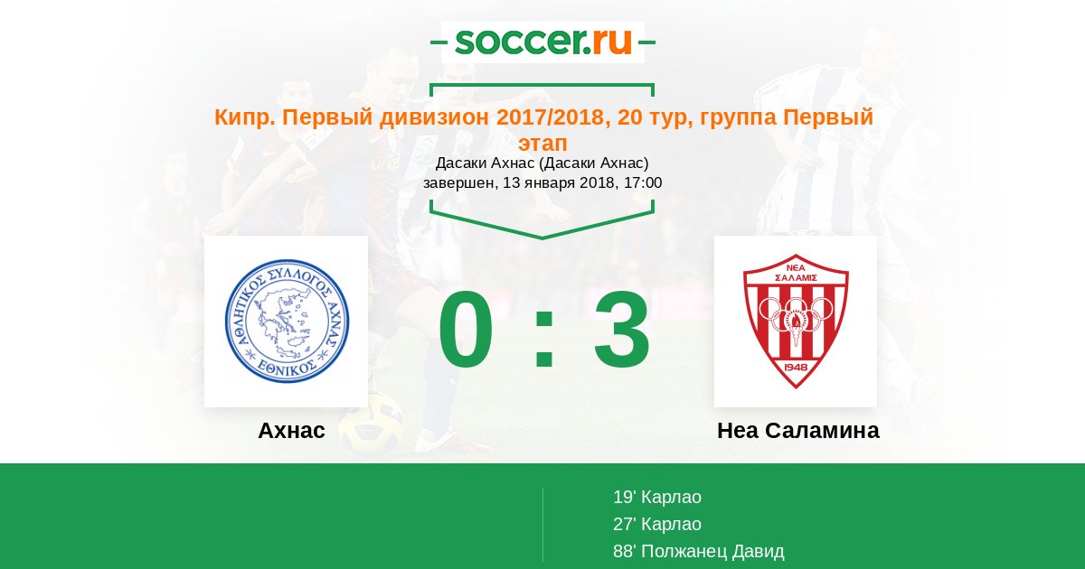 Запасные: 19 Хараламбус Михалис (с 15'), 35 Элиа Андреас (с 54'), 20 Элиа Константинос (с 80'), 10 Поятзис Христос, 13 Хатзиарос Петрос, 15 Кконе Симеон, 17 Мусич Михалис, 22 Энеску Андрей, 28 Филипов Филип, 55 Мулазимис Димитрис, 95 Прочек Патрик