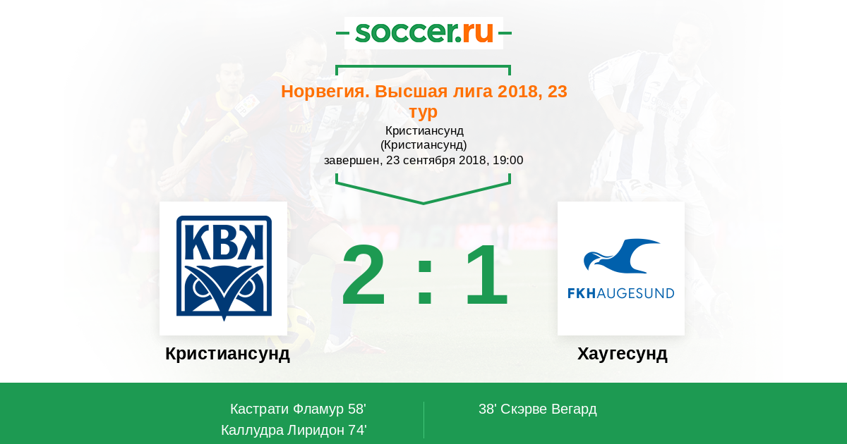 38' (0:1) Скэрве Вегард (18) (Кнудсен Фредрик (4))