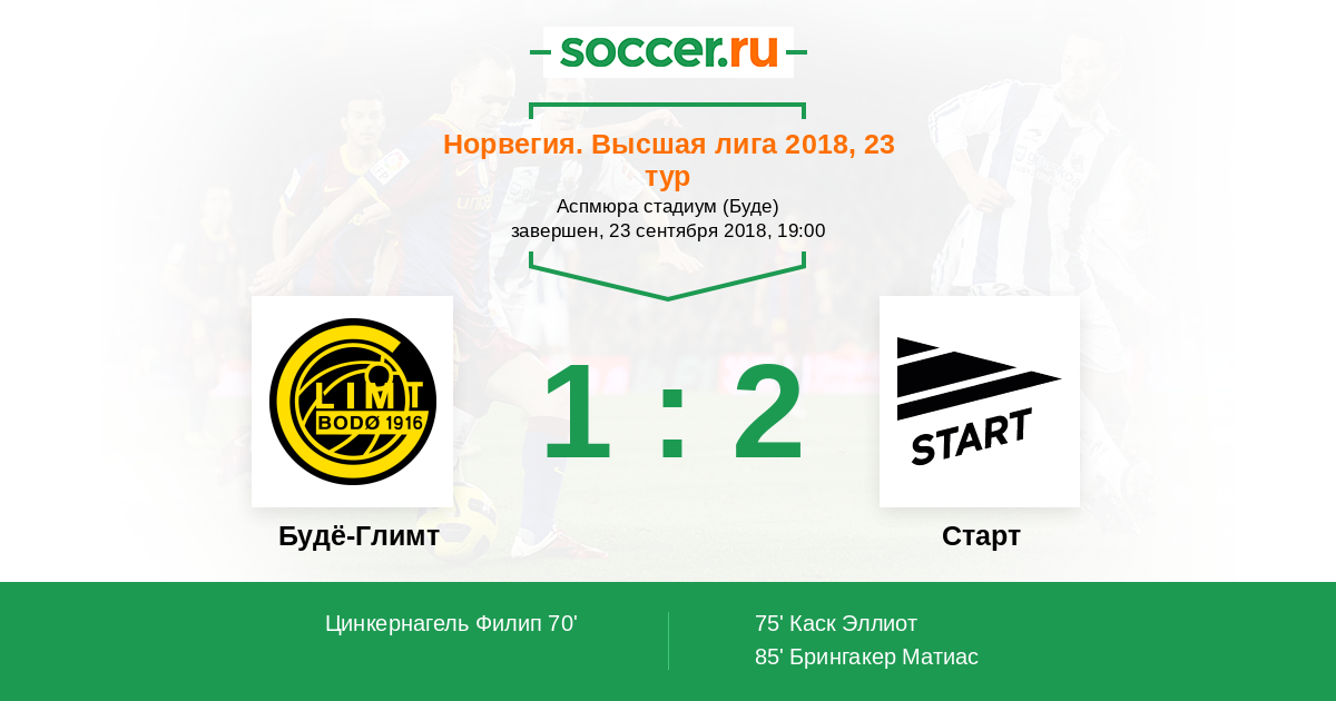 70' (1:0) Цинкернагель Филип (19) (Салтнес Ульрик (14))
