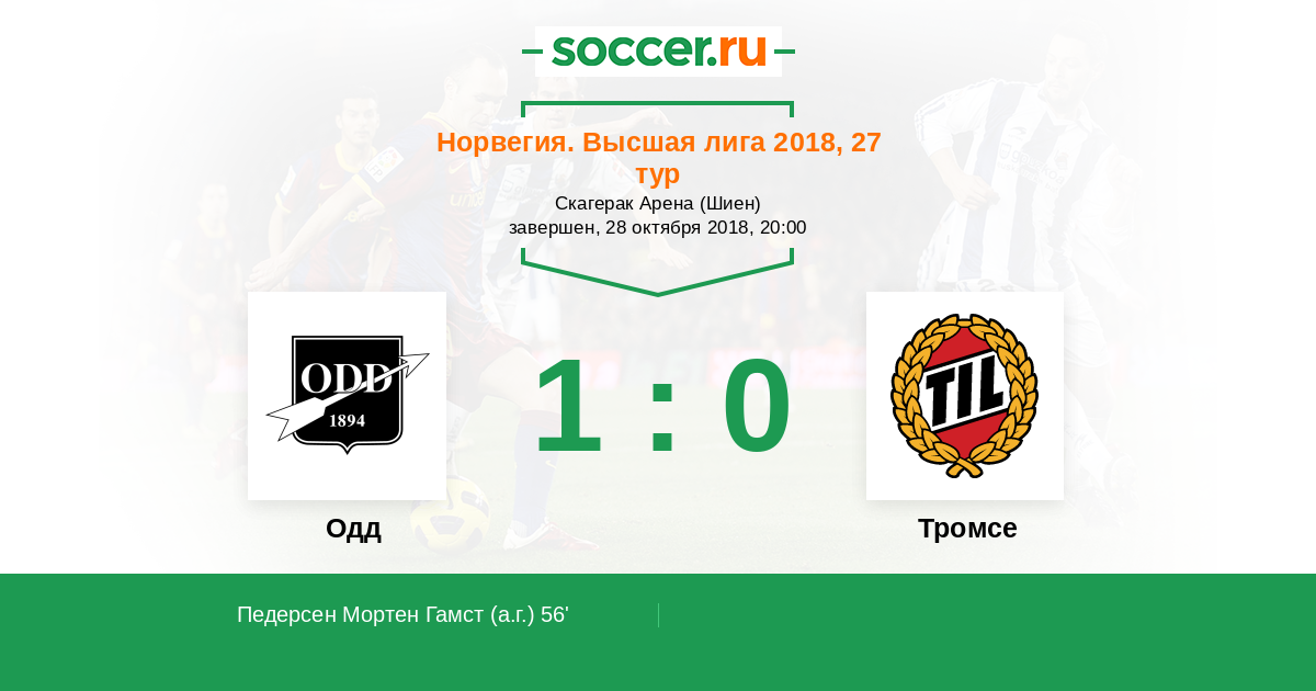 56' (1:0) Автогол Педерсен Мортен Гамст (7)